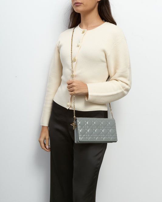 Grey Patent Cannage Calfskin Leather Lady Dior Pouch with GHW Chain WOC
