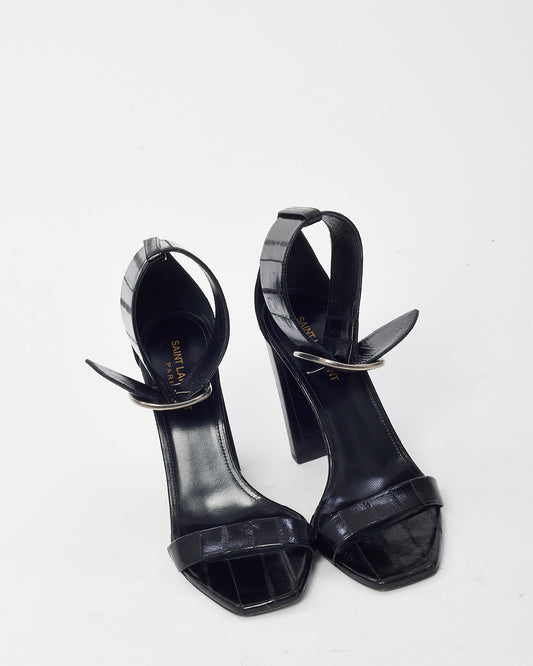 Black Croc Embossed Leather Lou Lou 105 Buckle Sandals - 39