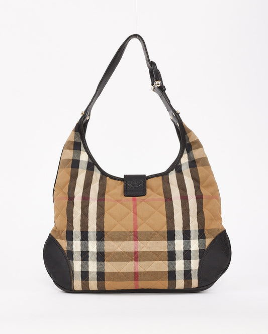 Beige Check Print Cotton Shoulder Bag