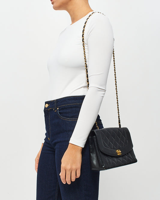 Vintage Black Caviar Leather Medium Diana Flap Shoulder Bag