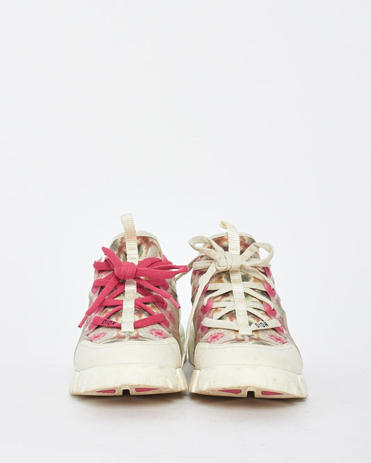 Pink/White Kaleidiorscopic Fabric D-Connect Chunky Sneakers - 37.5