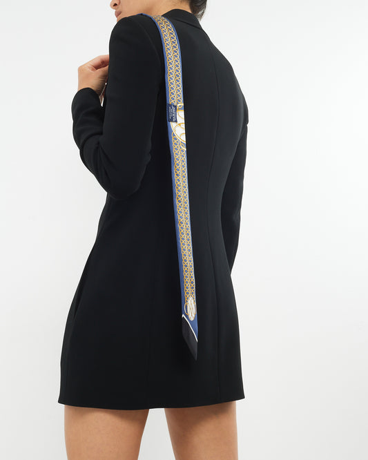 Explore Hermès's exquisite collection of accessories, featuring this certified pre-owned Marine/Noir/Gold Silk Twilly. Embodying timeless elegance and modern sustainability, each piece, including favorites like this, is authenticated by Retyche. Discover sustainable luxury — shop our current treasures or find inspiration for your next coveted find.