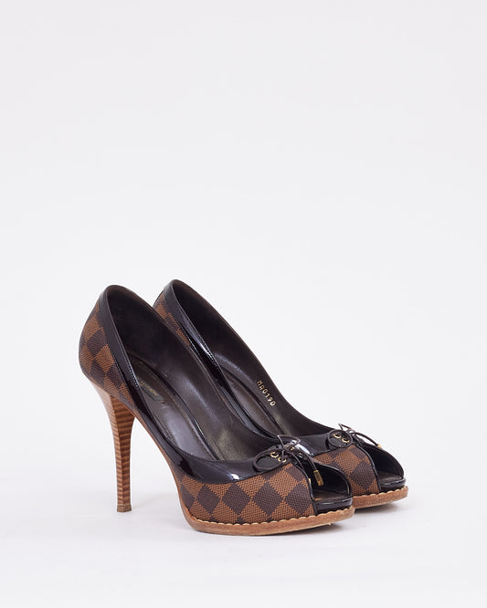 Damier Ebene Canvas Peep Toe Pumps - 40