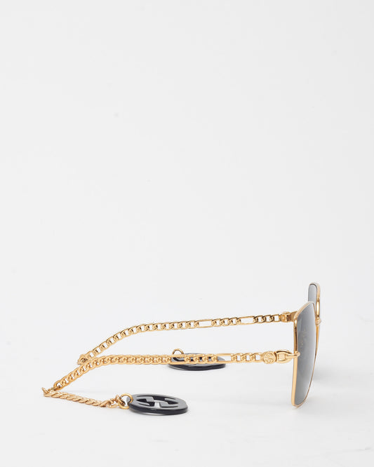 Gold Metal Oversize Square GG0724S Sunglasses with Chain GG Logo Charms