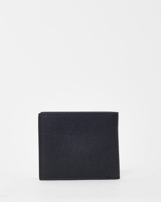 Black Grained Leather Small TF Logo Bi-Fold Wallet