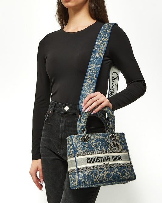 Blue Denim Jardin Magique Embroidery Canvas Medium Lady D-Lite Bag