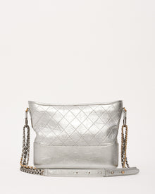 Silver CC Logo Embossed Leather Small Gabrielle Hobo Crossbody Bag