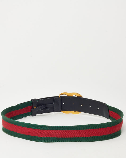 Black Leather and Red/Green Web Canvas GG Marmont Wide Belt - 90/36