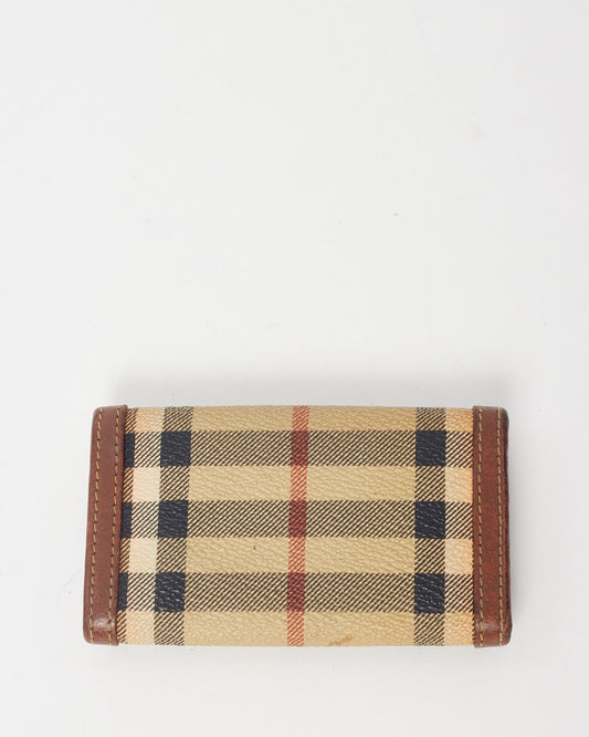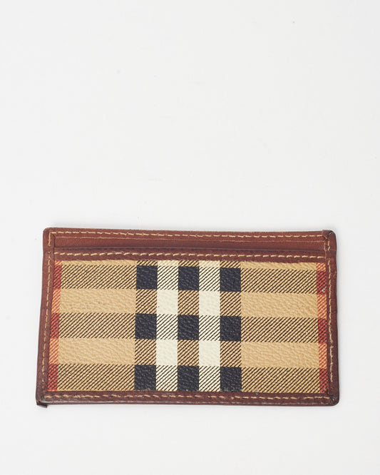 Vintage Brown Leather and Nova Check Coated Canvas Card Holder
