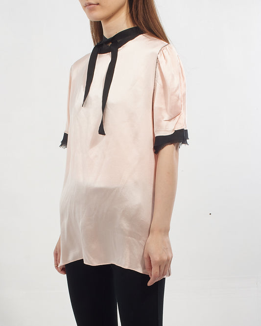 Dolce & Gabbana Pink Silk Top with Black Trim -42