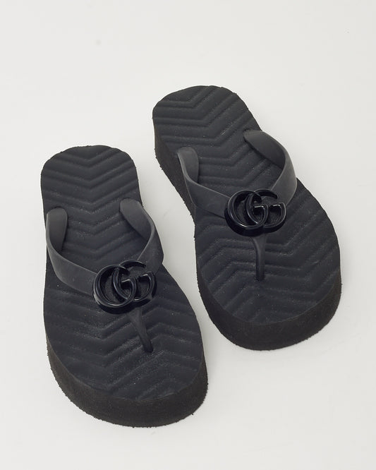 Black Chevron Matelassé Rubber Black Marmont Double-G Flip Flop Sandals - 38