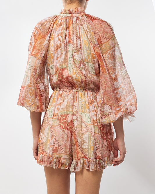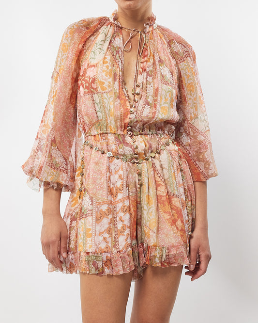Royal Blue Silk Long Sleeve Draped Naha Short Mini Dress - L