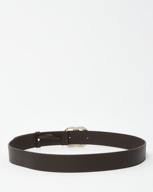 Brown Grained Leather SHW Interlocking GG Marmont Wide Belt - 105/42