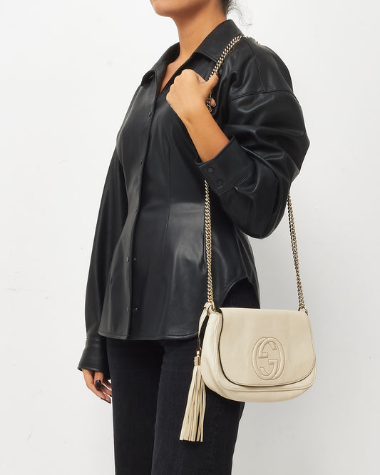 White Laser-Cut Vienne Leather Buckle Ballerina Flats - 41