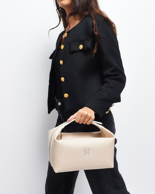 Neutral Beige Wool Knit Siver Lame GG Monogram Bucket Hat - S