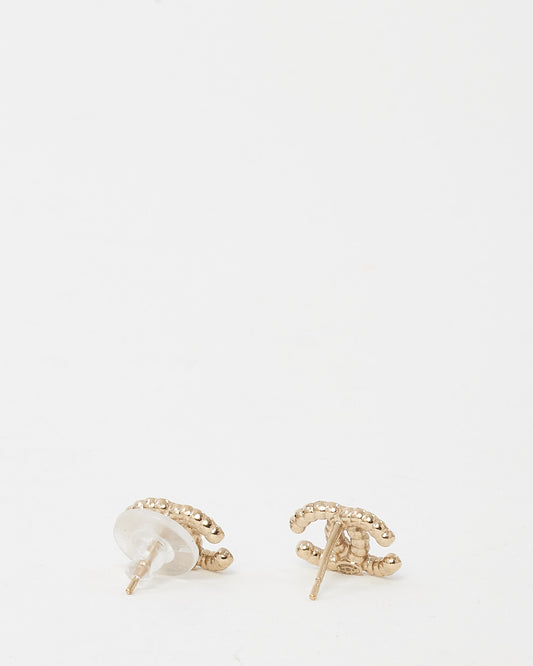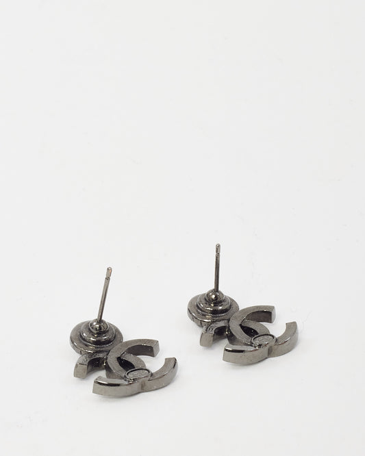 Gunmetal Halo Crystal Strass Stud CC Logo Earrings