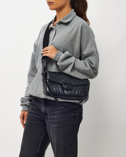 Black Chevron Leather Medium Loulou Shoulder Bag GHW