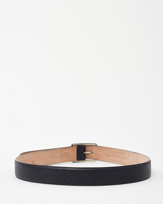 Black Monogram Signature GG Leather Silver Buckle Belt - 115/46