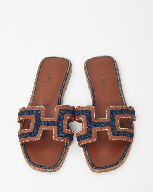 Hermès Étoupe Leather Oran H Sandals - 36.5