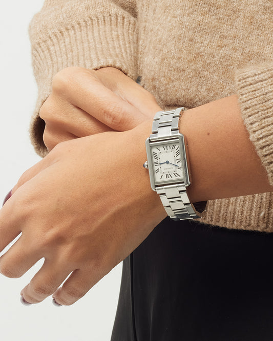 Silver Stainless Steel Large Model Quartz Movement Tank Solo Watch