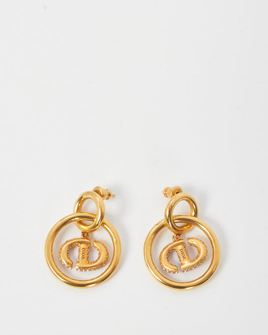 Gold-Finish Metal and White Crystal Rhinestone CD Heart and Pearl Drop Earrings