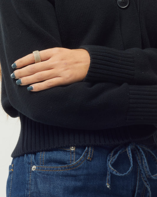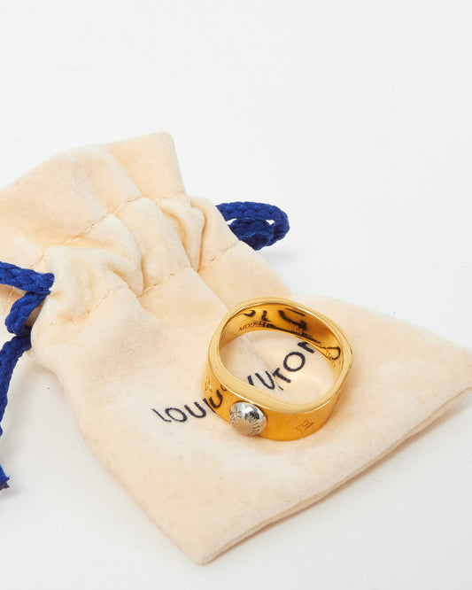 Gold Metal and Rhinestone Crystal Petit CD Circle Ring - M
