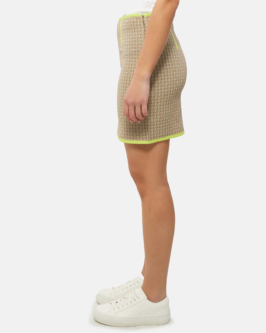 Beige Monogram Nylon Logo Front Zip Skirt - 36