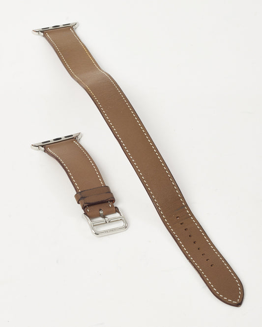 Etoupe Swift Calfskin Leather Double Tour Attelage Apple Watch Strap 38mm