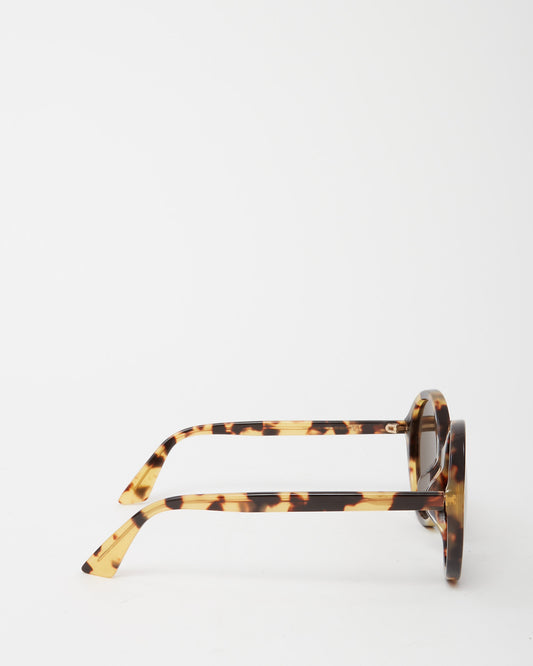 Beige and Brown Tortoise GG 0023SA Round Oversize Sunglasses