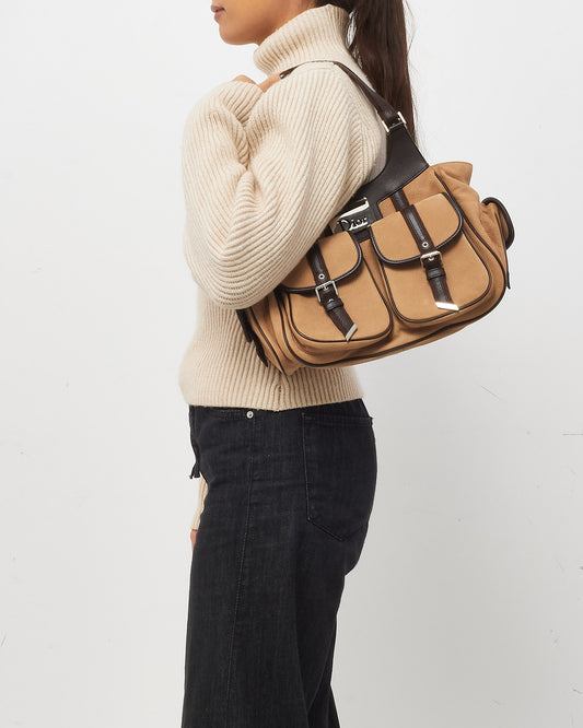 Tan Leather Beige and Ebony GG Monogram Canvas Medium Bree Shoulder Bag
