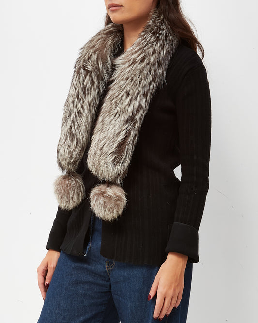 Pre-Owned Brown and Silver Grey Blend Fox Fur Fur Pom-Pom Trimmed Scarf