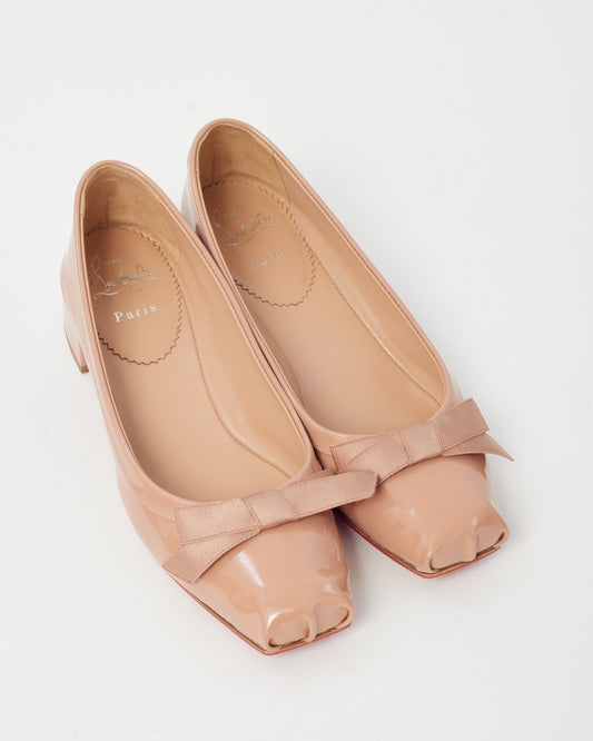 Beige Patent Leather Mamaflirt 30 Bow Block Heel Ballerina Pumps - 38.5