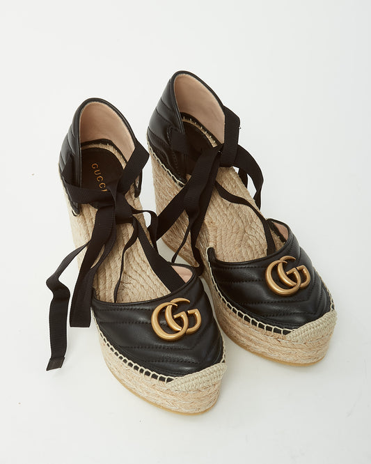 Black Leather GHW GG Marmont Espadrille Wedges - 39