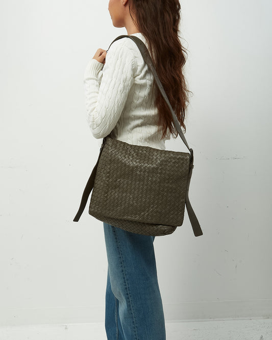 Vintage Grey Intrecciato Leather Messenger Crossbody Bag