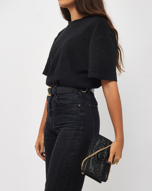 Black Leather La Medusa Crystal Palazzo Belt - 75