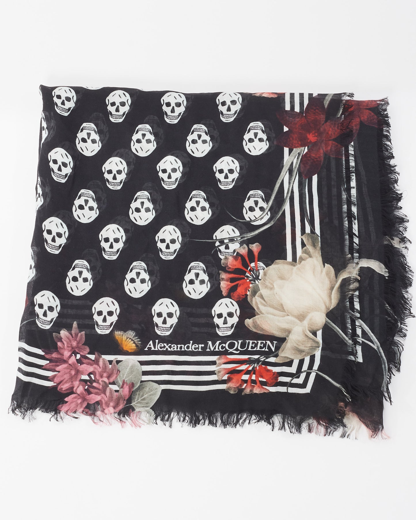 Explore Alexander McQueen's exquisite collection of scarves, featuring this certified pre-owned Black Skull & Pink Floral Print Scarf. Embodying timeless elegance and modern sustainability, each piece, including favorites like this, is authenticated by Retyche. Discover sustainable luxury — shop our current treasures or find inspiration for your next coveted find.