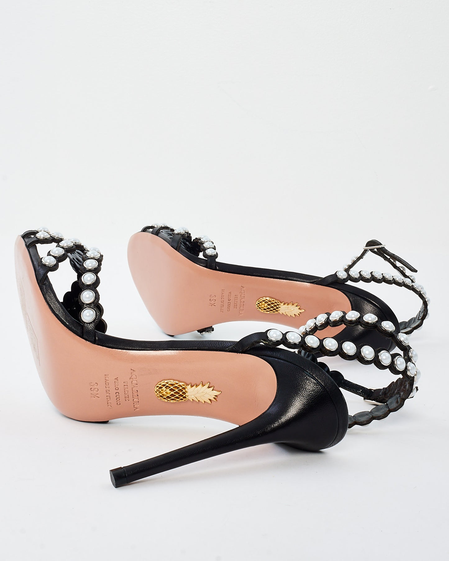 Explore Aquazzura's exquisite collection of Footwear, featuring this certified pre-owned Black Leather Pearl Embellished Stiletto Heel Sandals - 39.5. Embodying timeless elegance and modern sustainability, each piece, including favorites like this, is authenticated by Retyche. Discover sustainable luxury — shop our current treasures or find inspiration for your next coveted find.