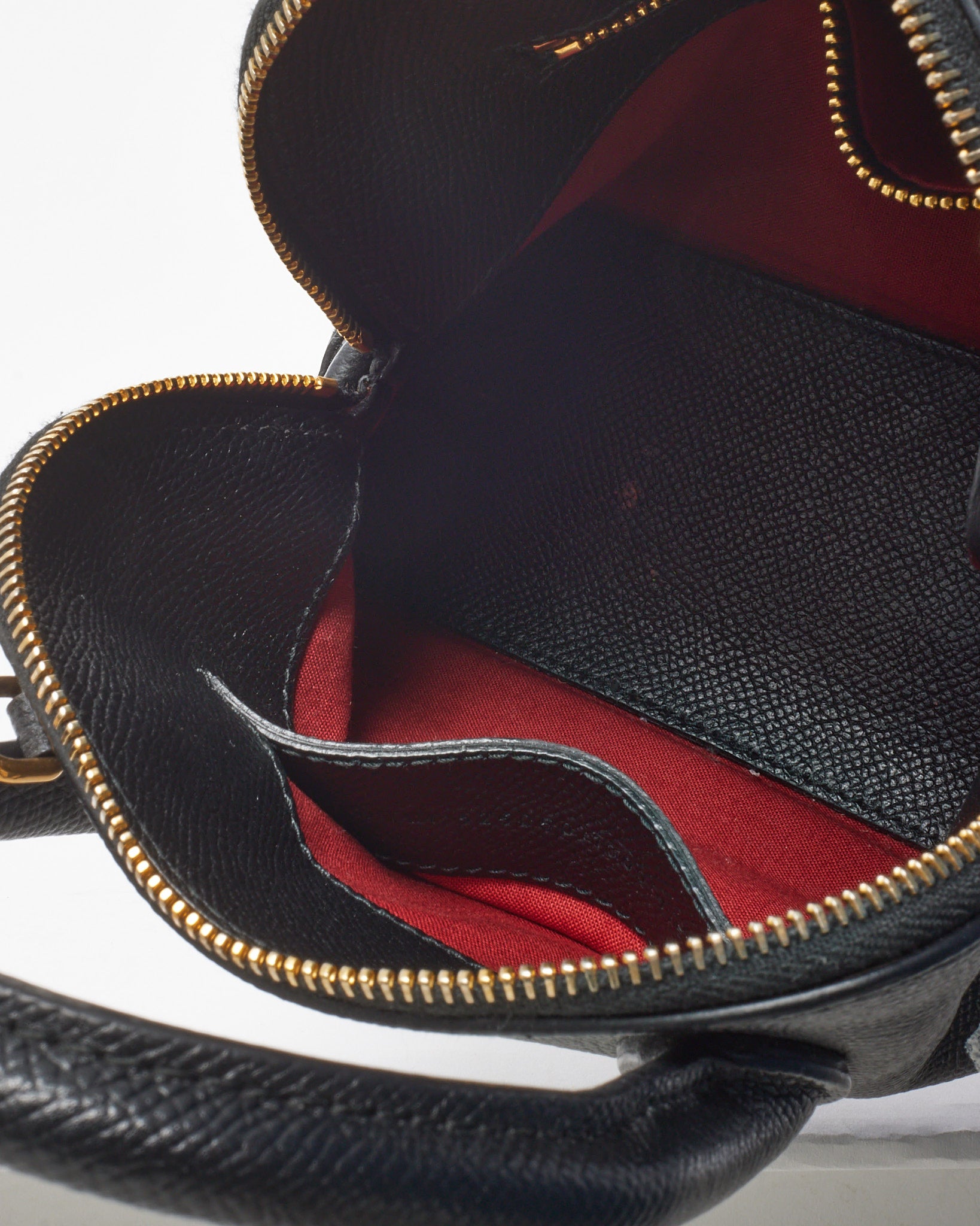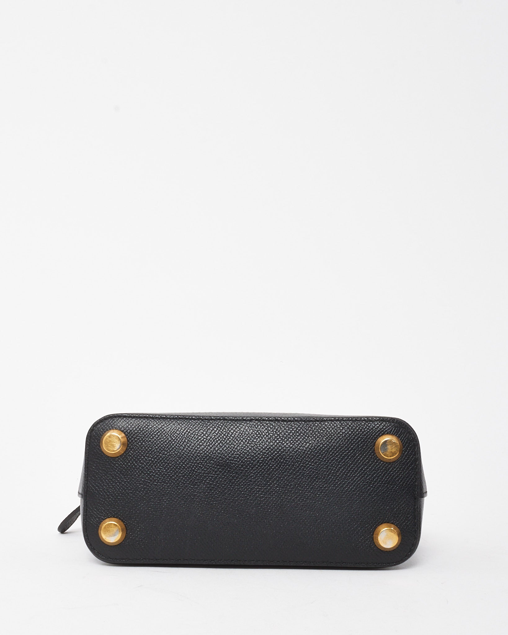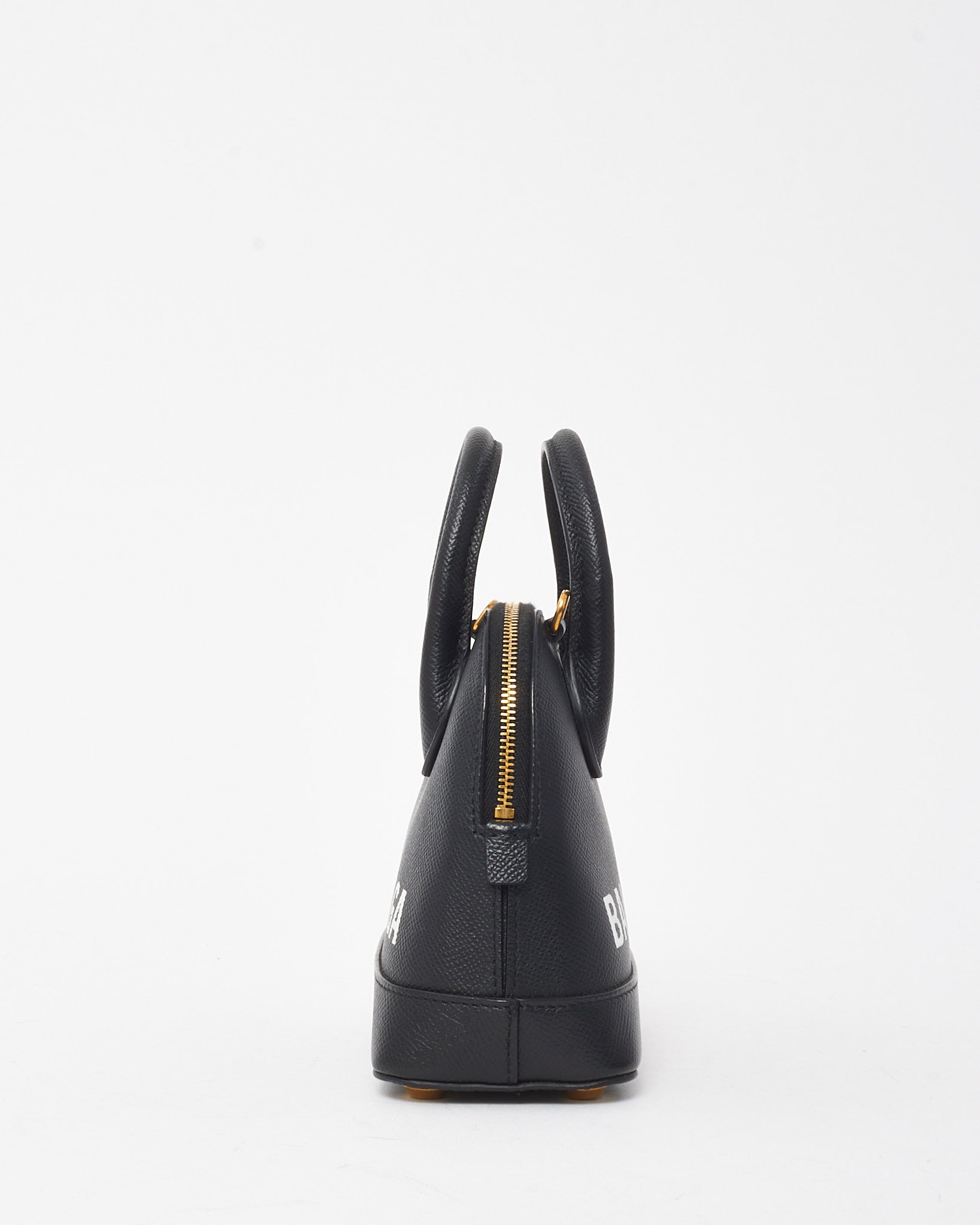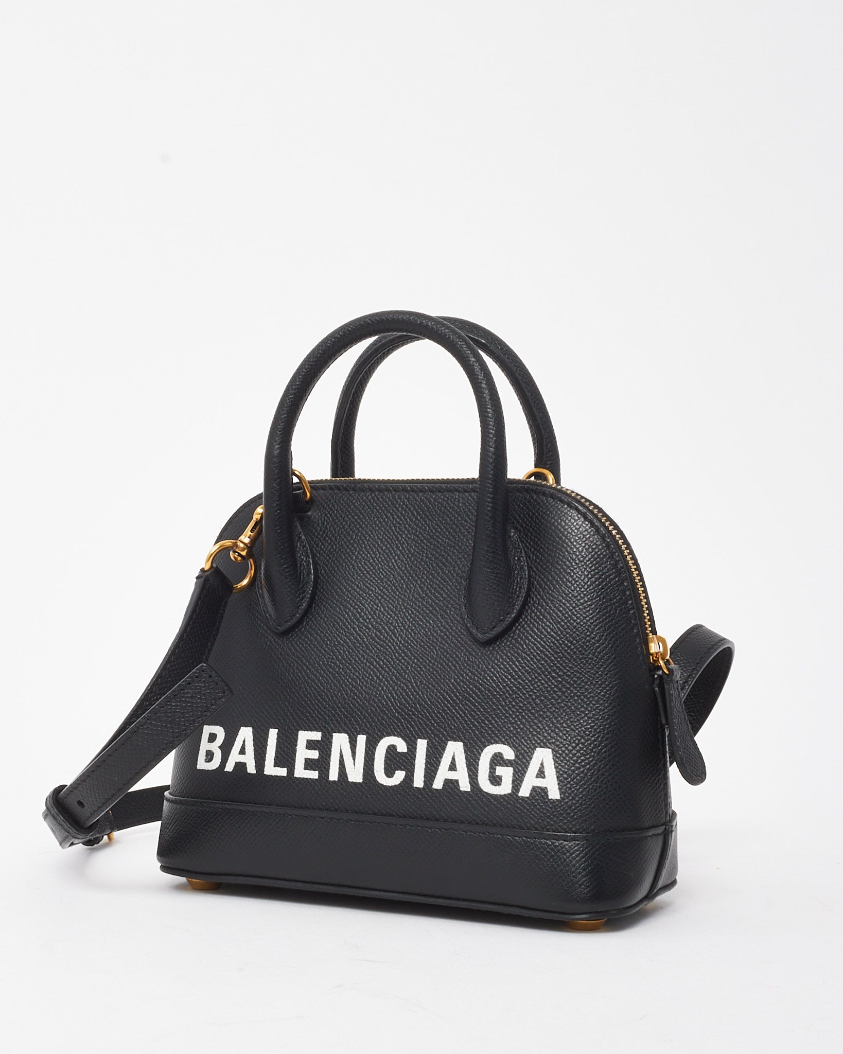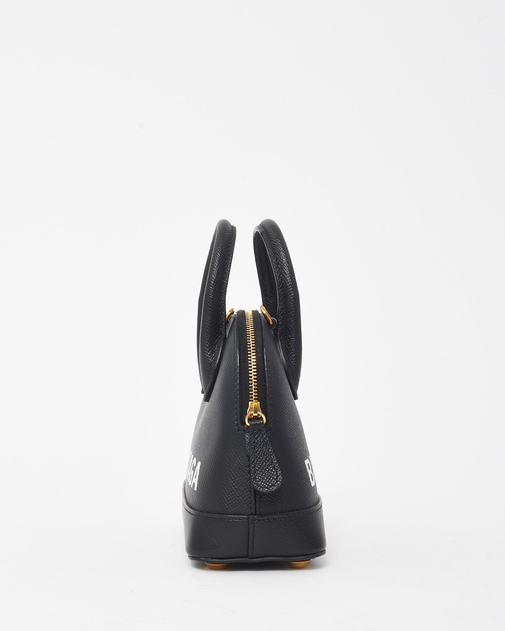 Black Grained Calfskin White Logo XXS Ville Top Handle Bag with Strap