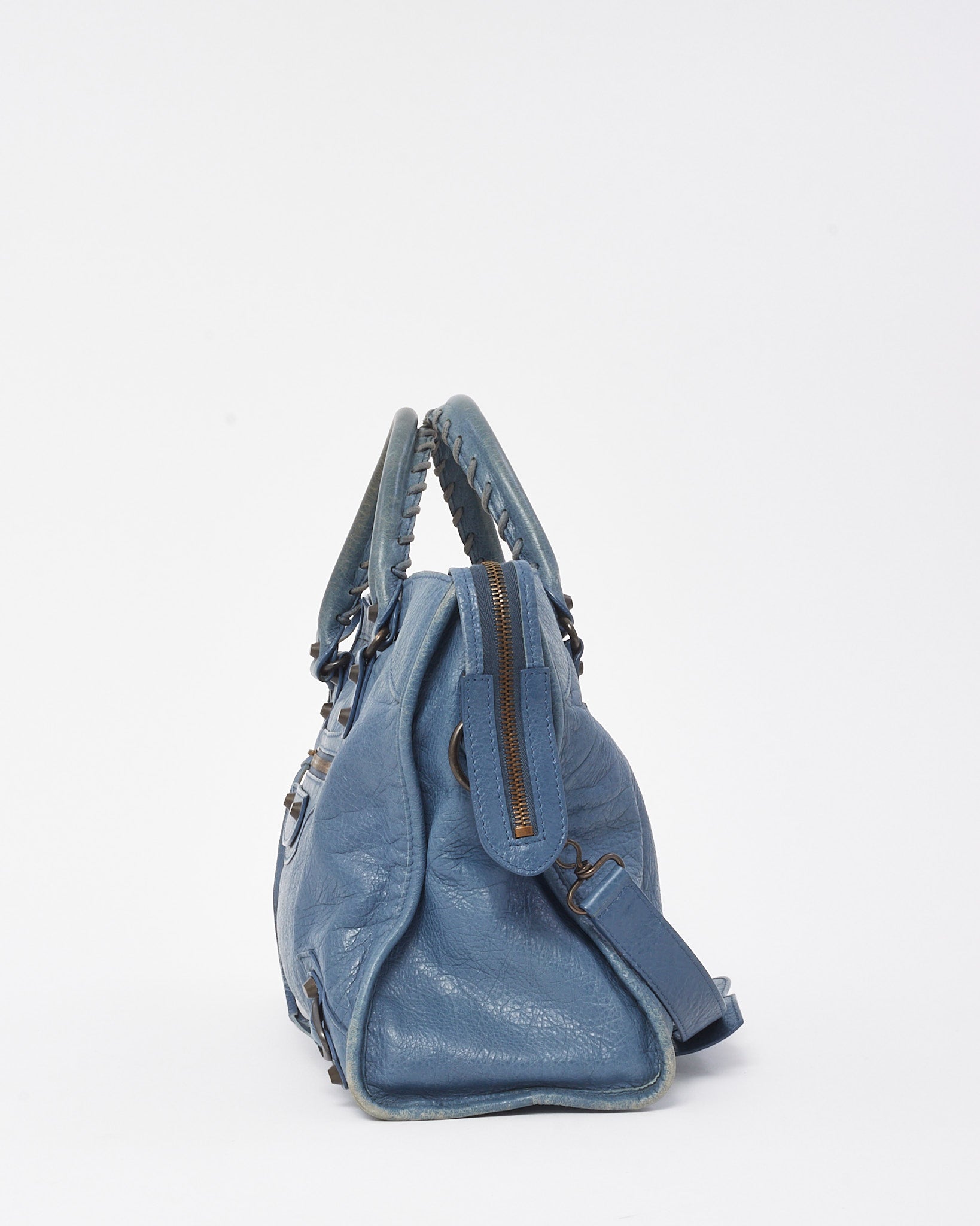 Blue Persian Lambskin Leather Motorcycle City Bag