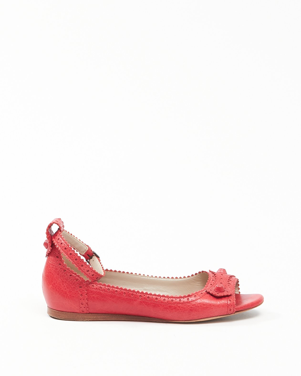 Red Motorcross City Ballerina Open Toe Flats - 36.5