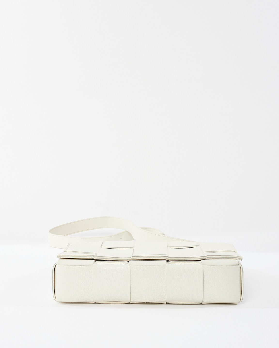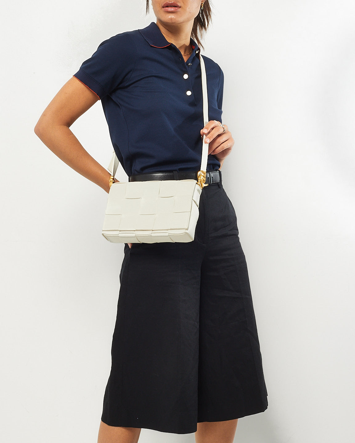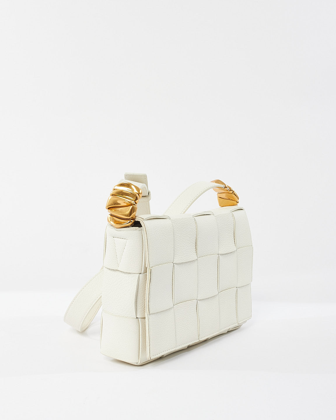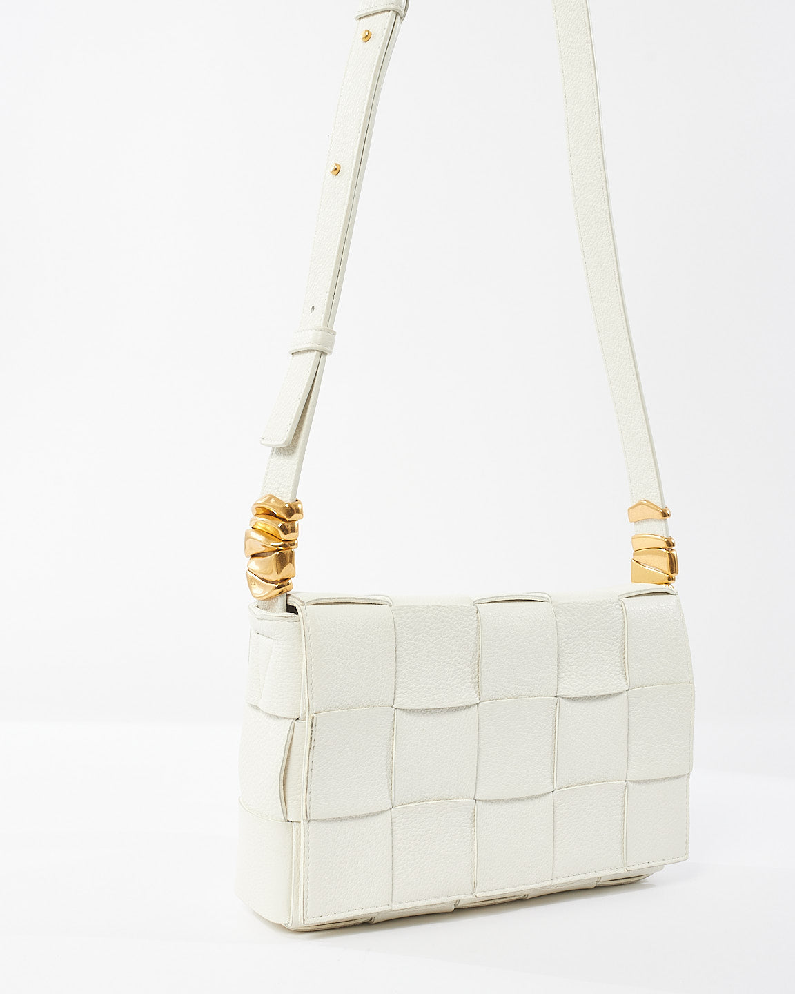 Explore Bottega Veneta's exquisite collection of handbags, featuring this certified pre-owned White Intrecciato Leather Gold Detail Casette Bag. Embodying timeless elegance and modern sustainability, each piece, including favorites like this, is authenticated by Retyche. Discover sustainable luxury — shop our current treasures or find inspiration for your next coveted find.