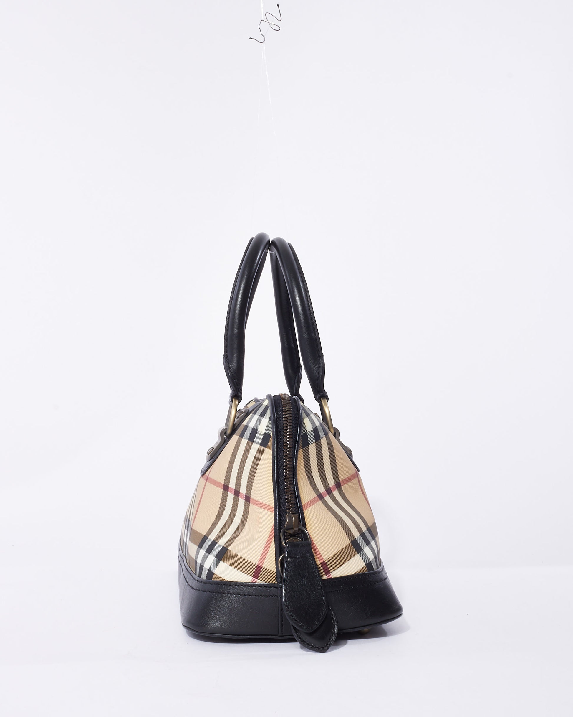 Vintage Beige Nova Check Canvas Top Handle Bowler Bag
