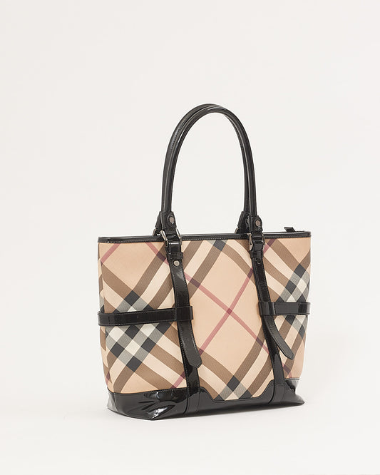 Beige Nova Check Coated Canvas & Patent Leather Tote Bag