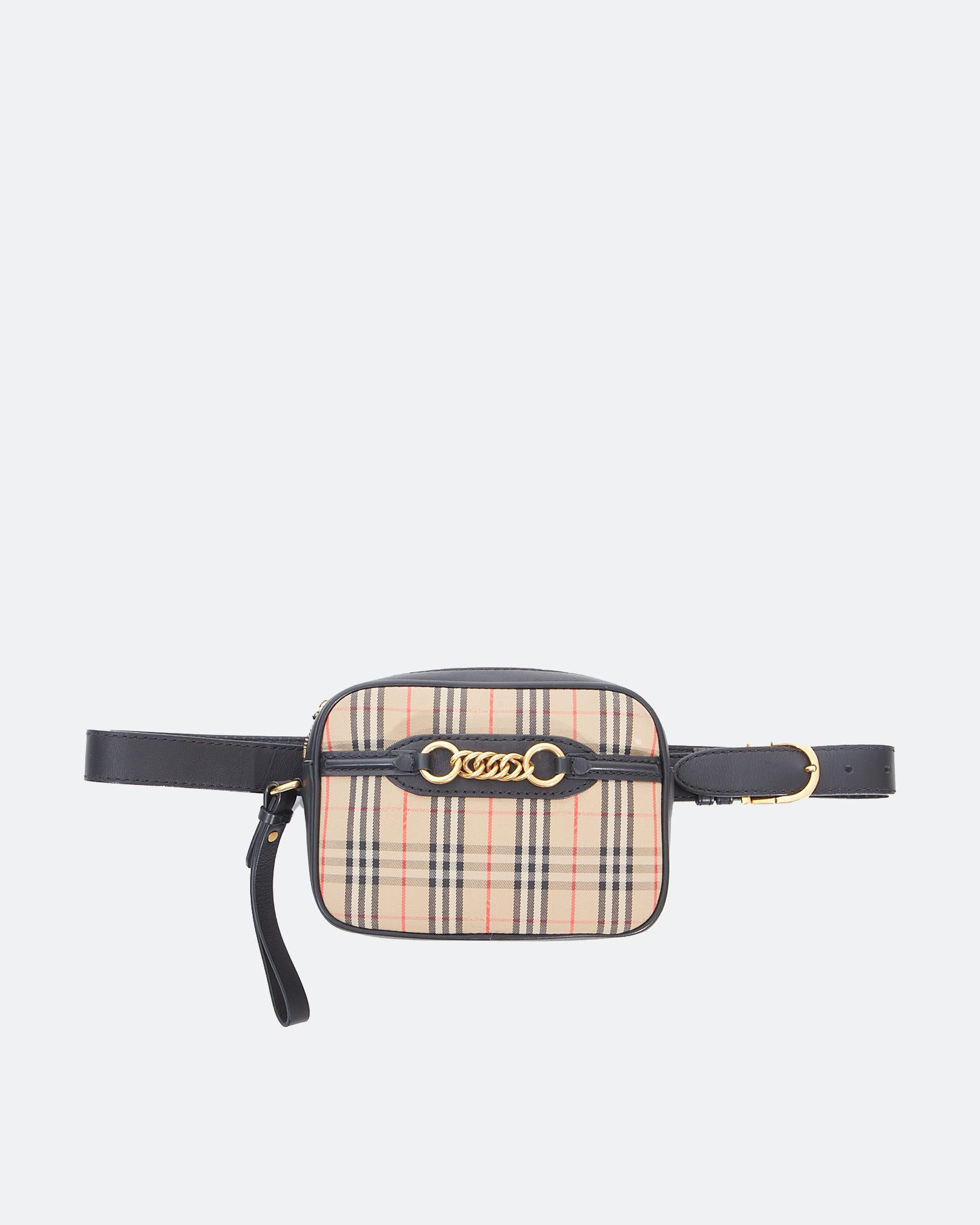 Black Leather/Canvas Haymarket Check Waist Bag