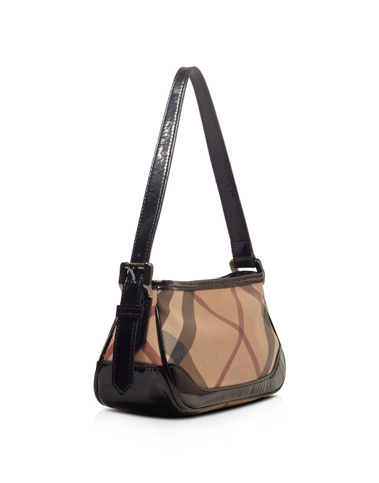 Black Patent Coated Canvas Supernova Check Baguette Shoulder Bag