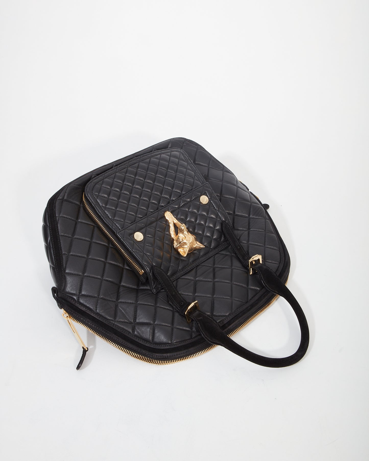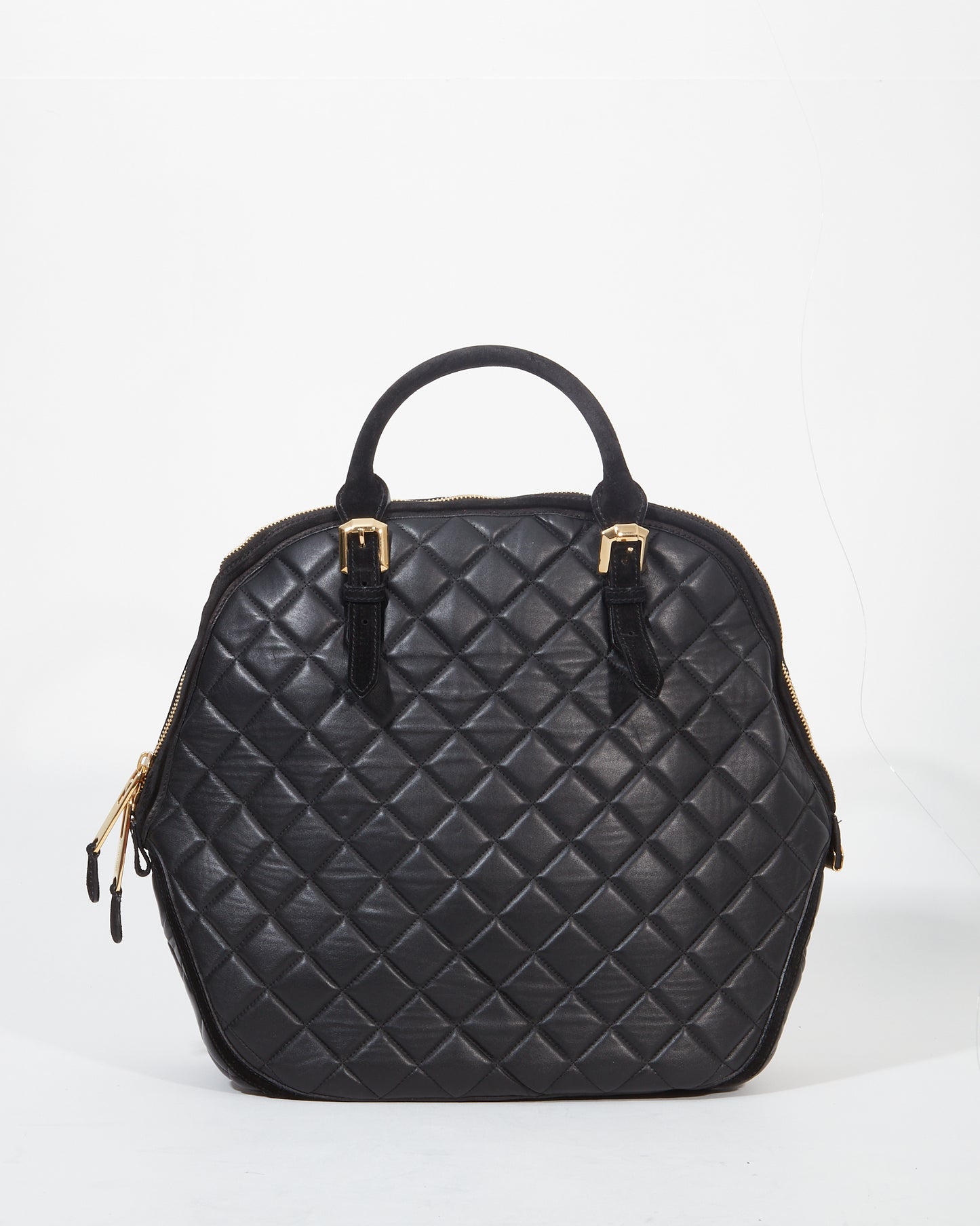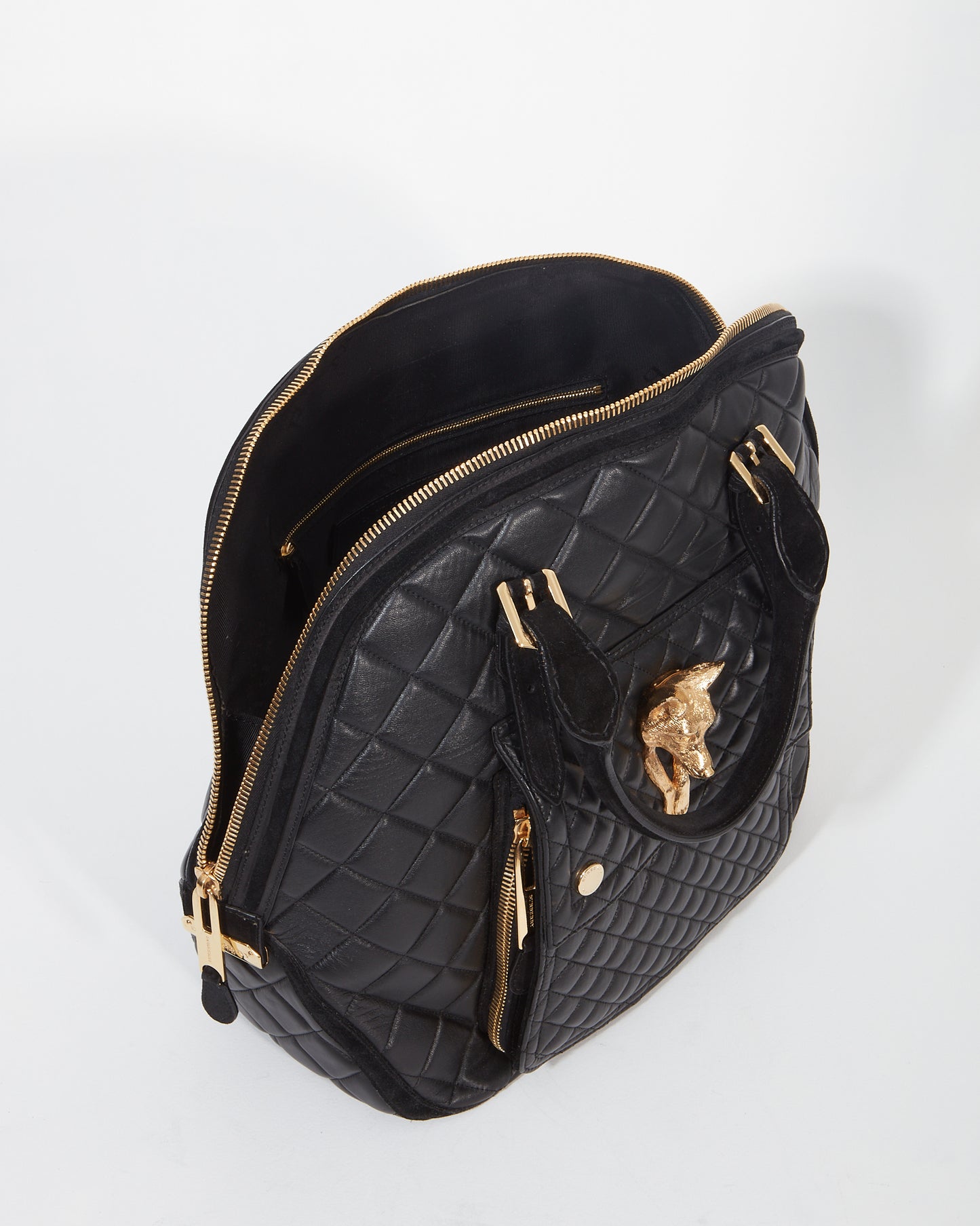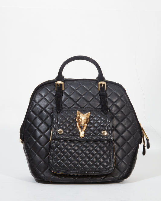 Black Quilted Leather Wold Head Large Top Handle Bag
