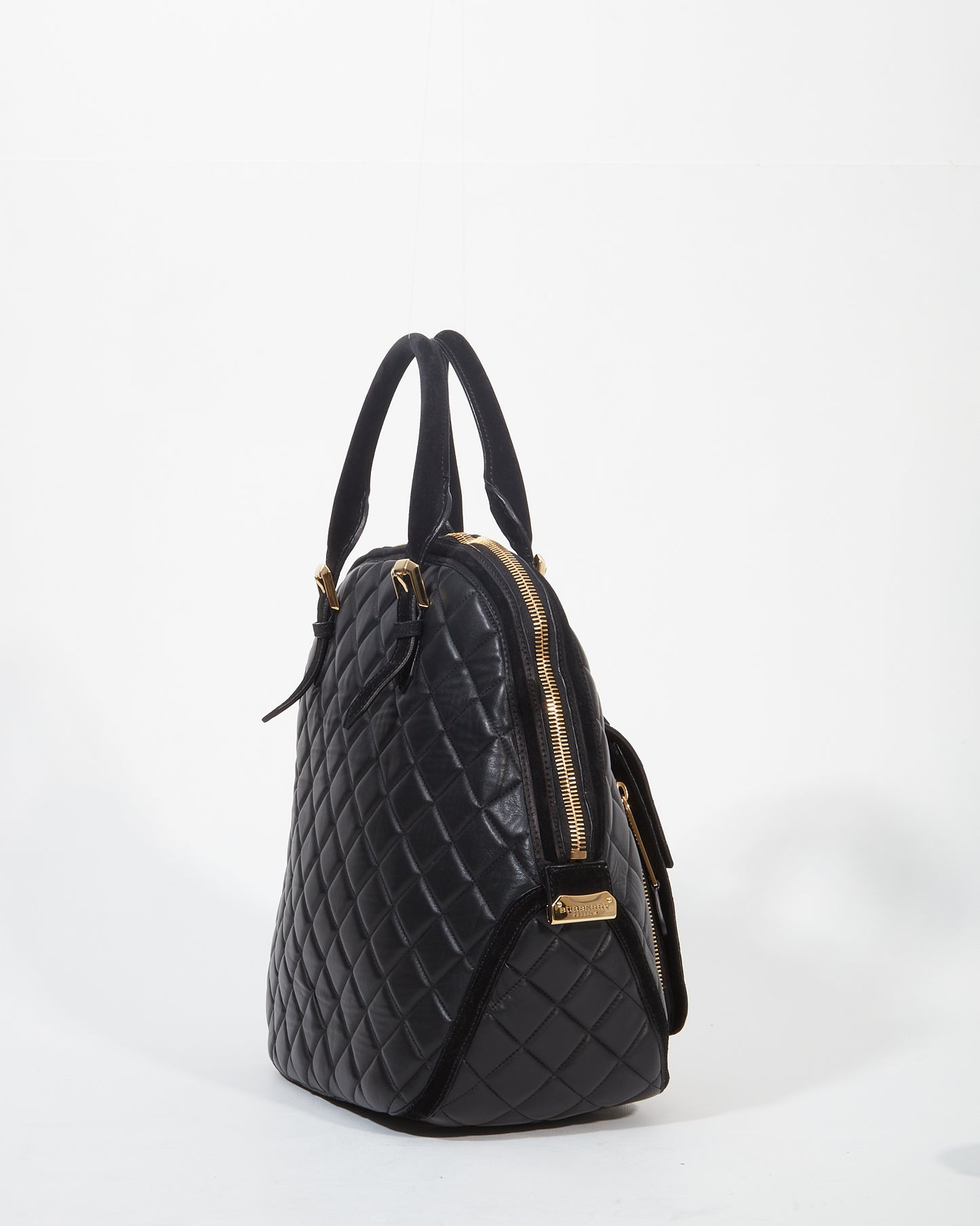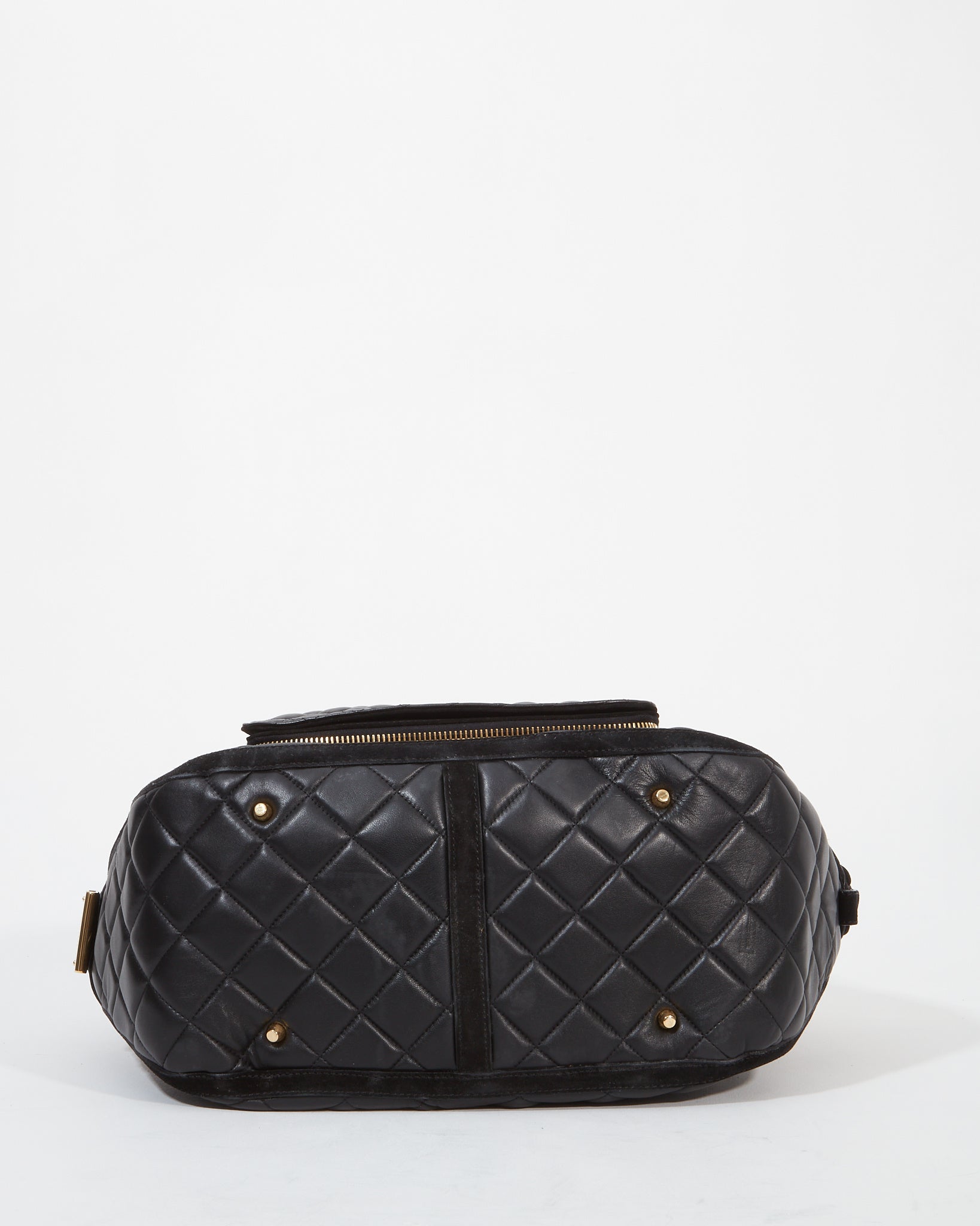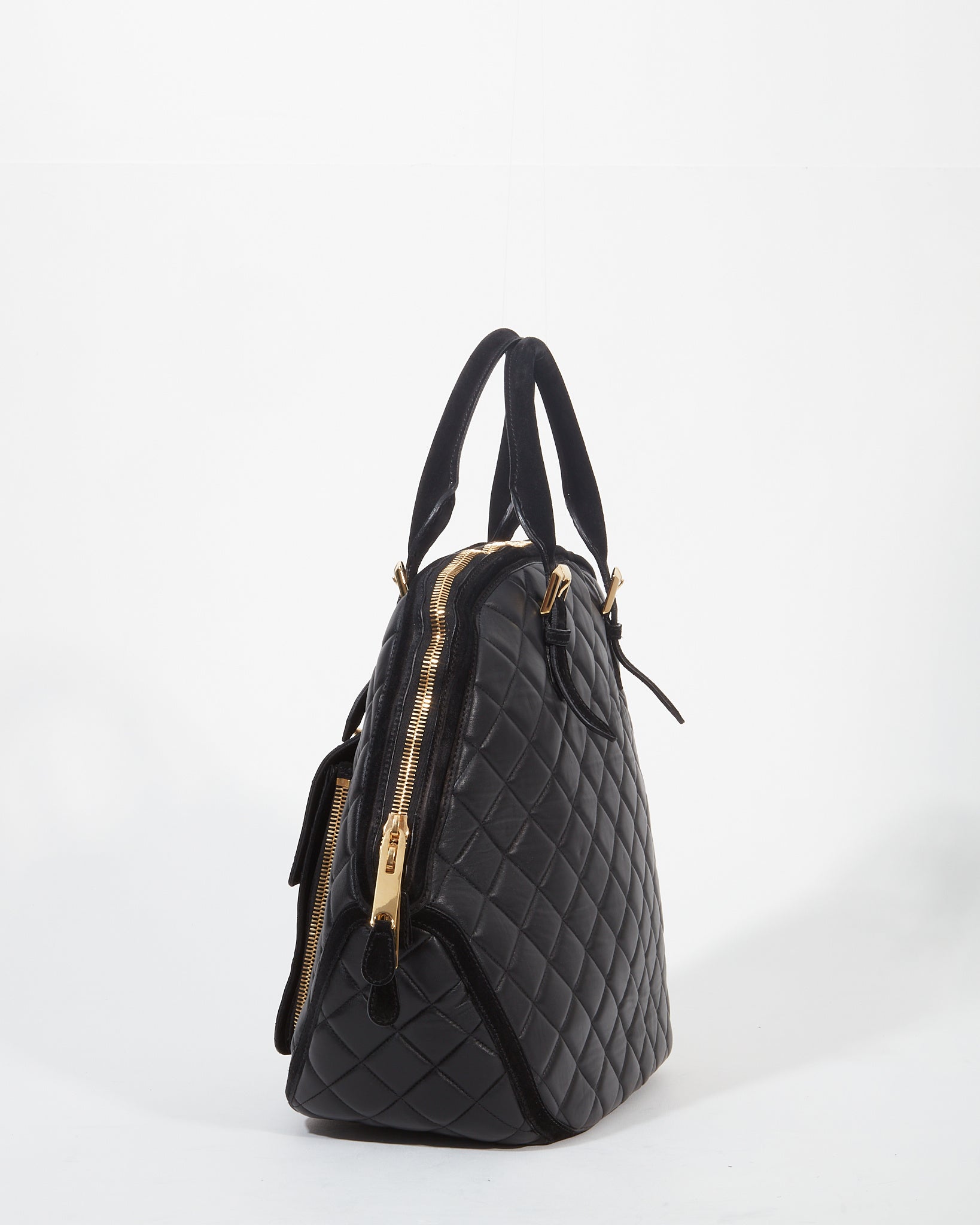 Black Quilted Leather Wold Head Large Top Handle Bag