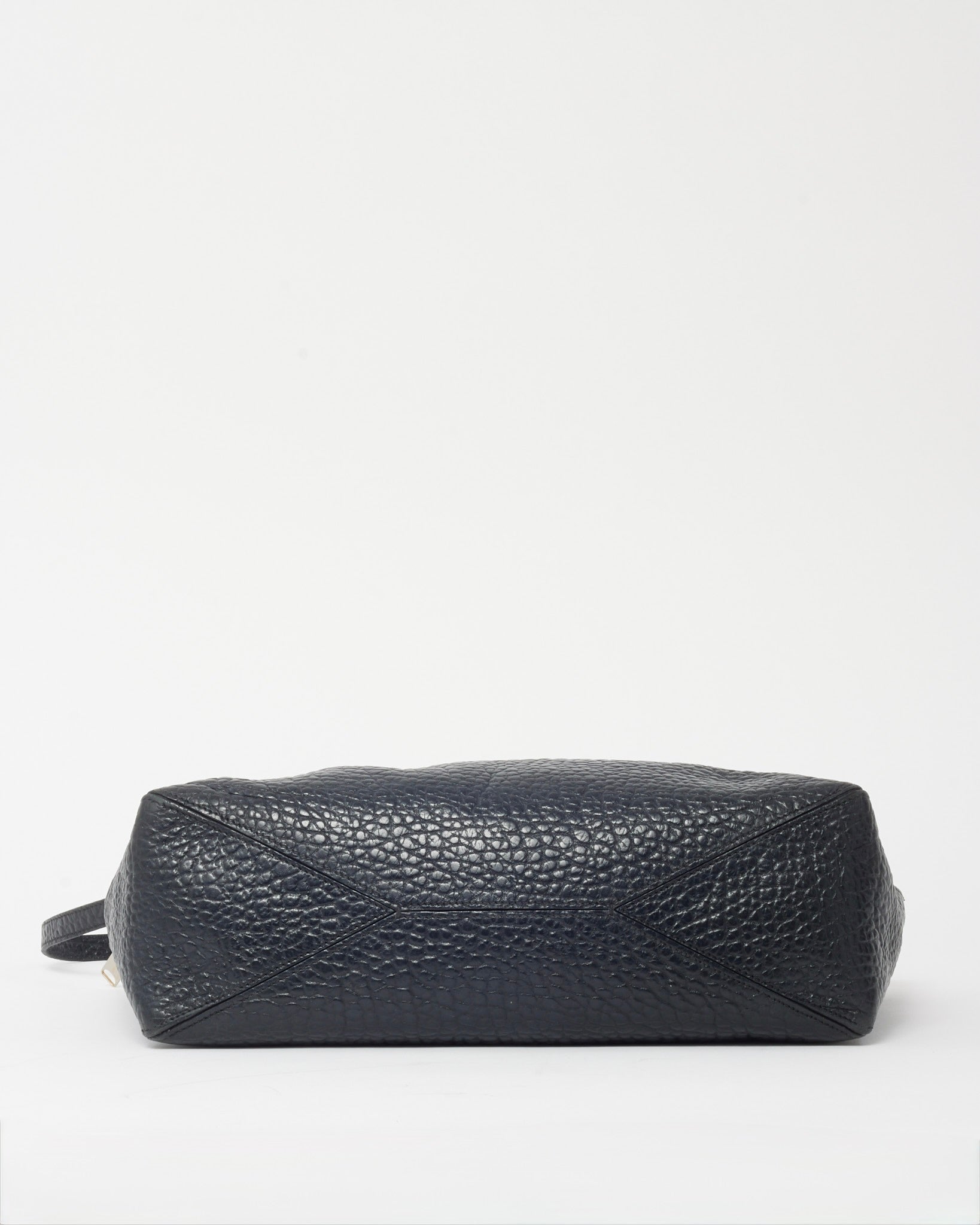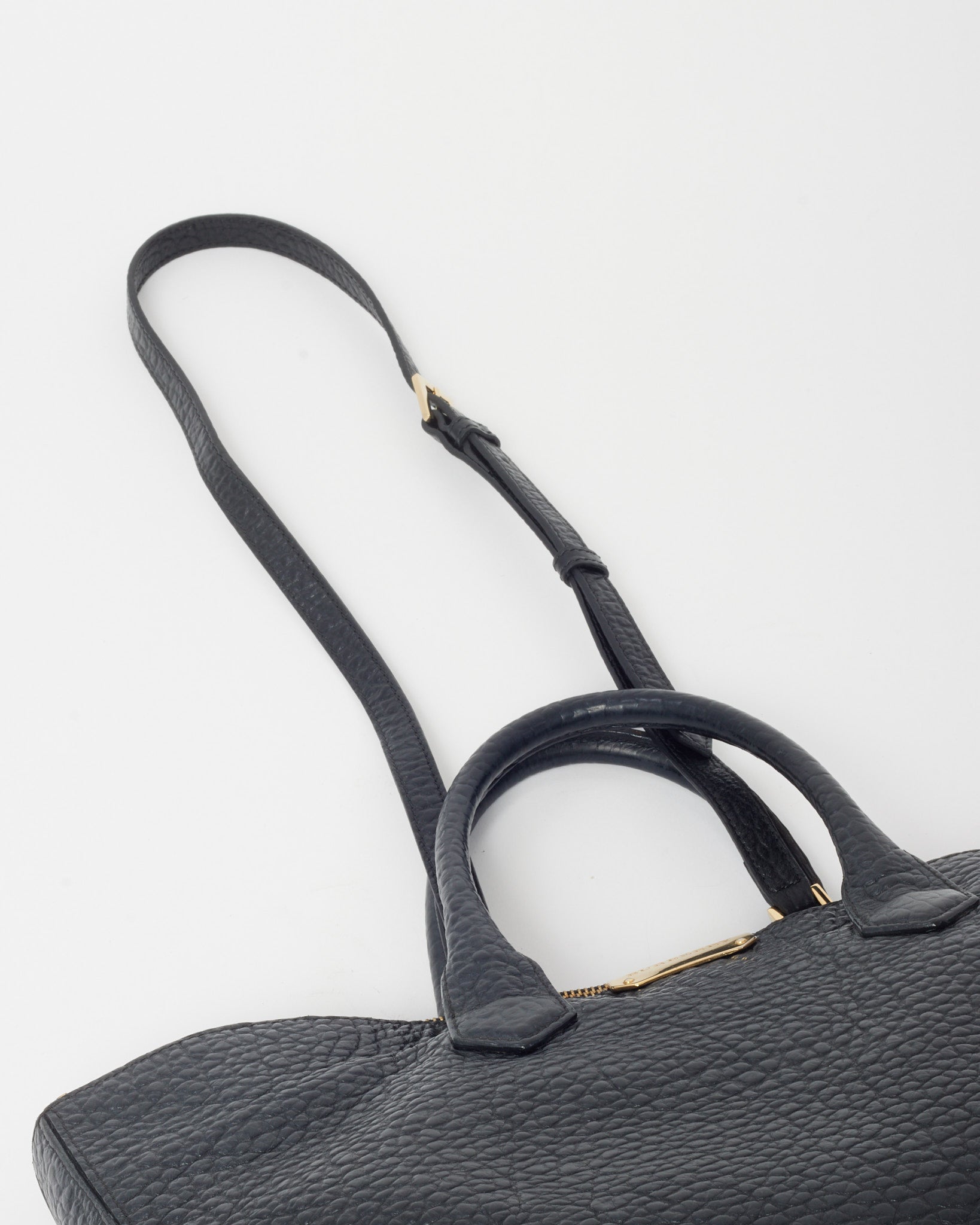 Black Textured Leather 2Way Top Handle Tote Bag with Strap