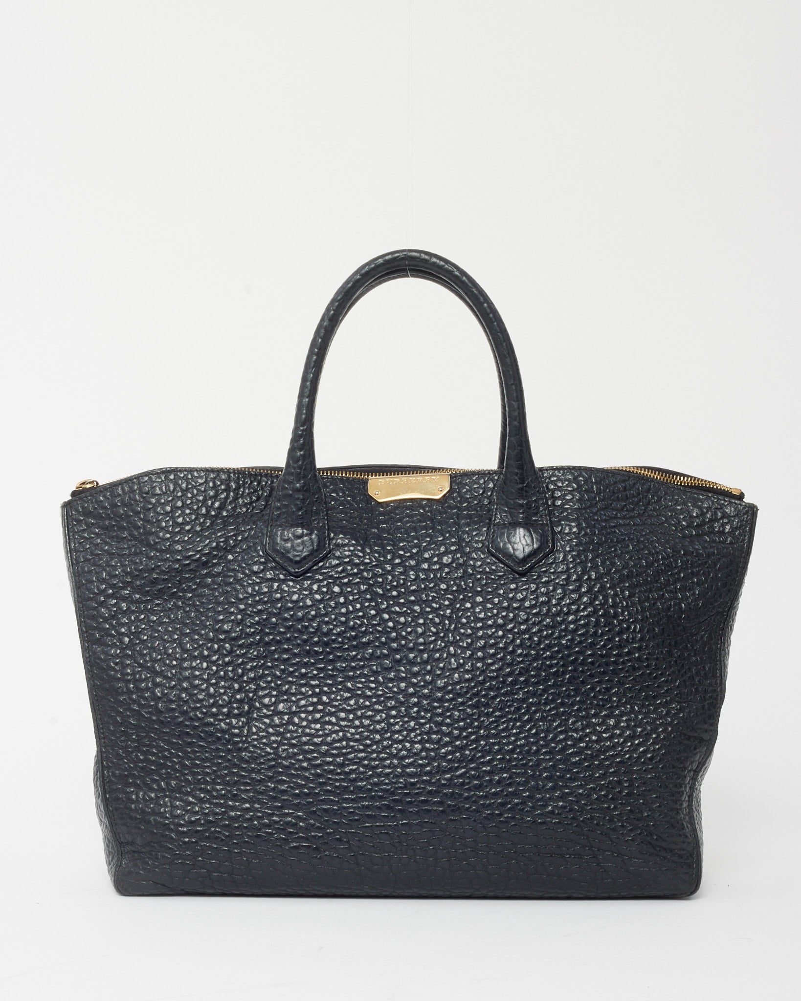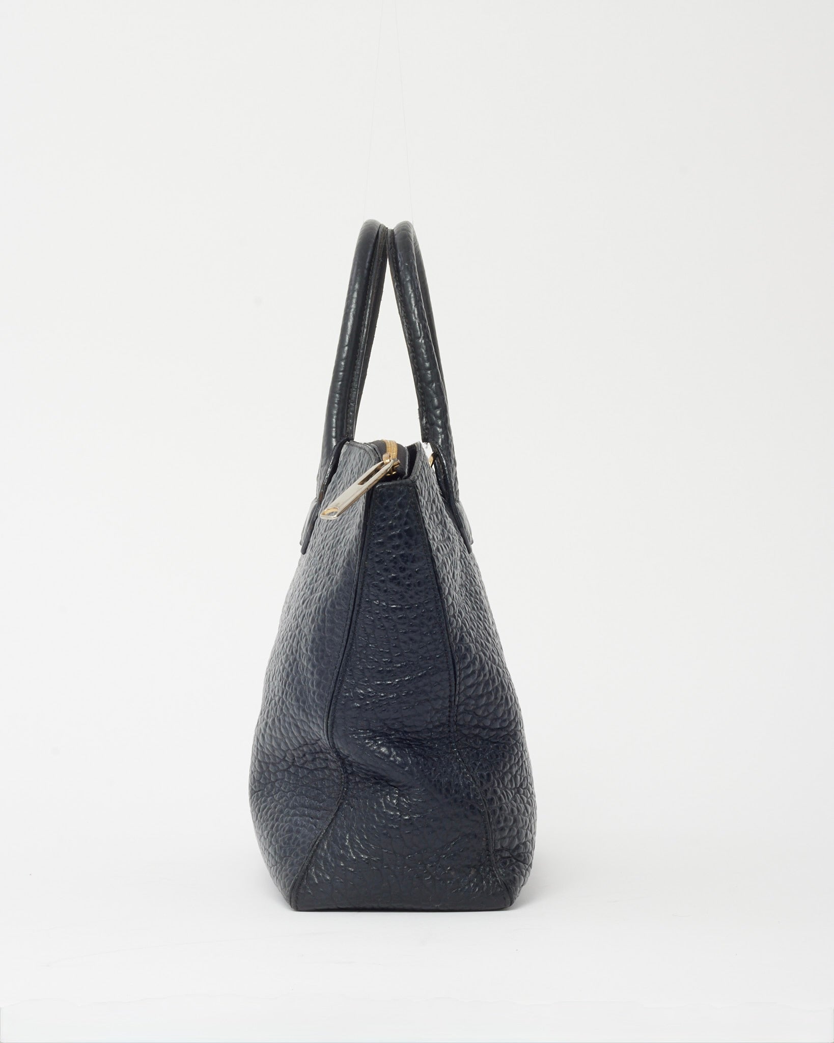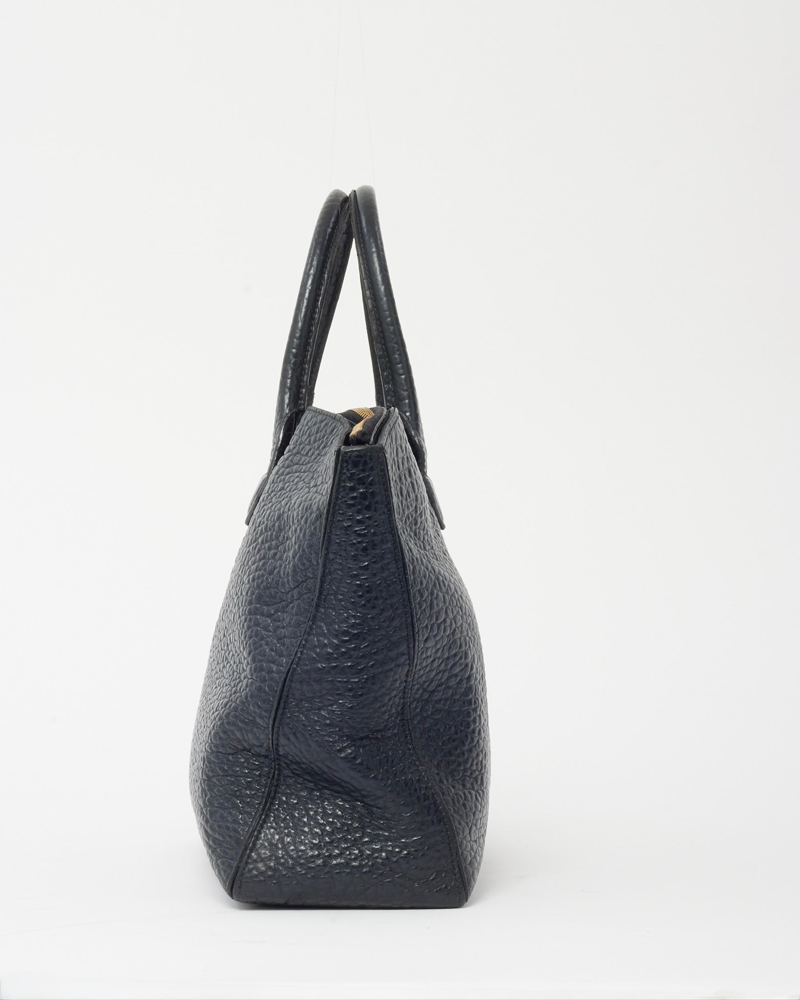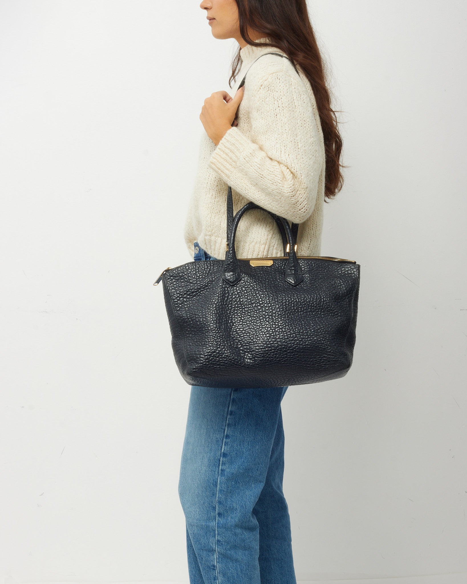 Polished and versatile, this pre-loved authentic Burberry Black Textured Leather 2Way Top Handle Tote Bag with Strap is a refined essential for everyday sophistication. Crafted from durable black grained leather, this structured tote features dual top handles and a detachable shoulder strap for both hand-held and crossbody styling. The clean silhouette is accented with minimal gold-tone hardware and discreet Burberry branding, while the spacious interior offers ample room for daily essentials. Timeless and functional, it’s the perfect companion from desk to dinner.