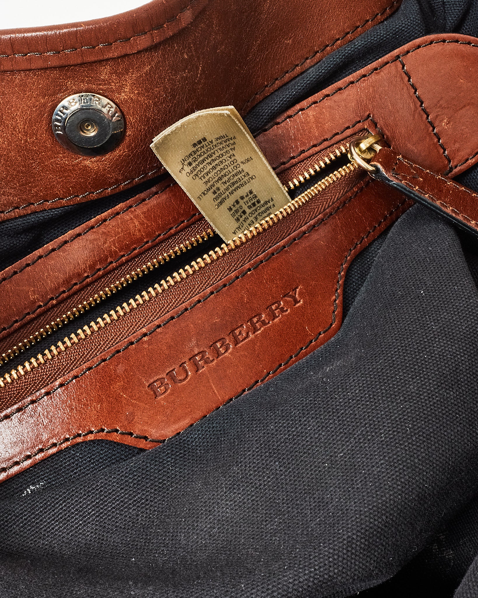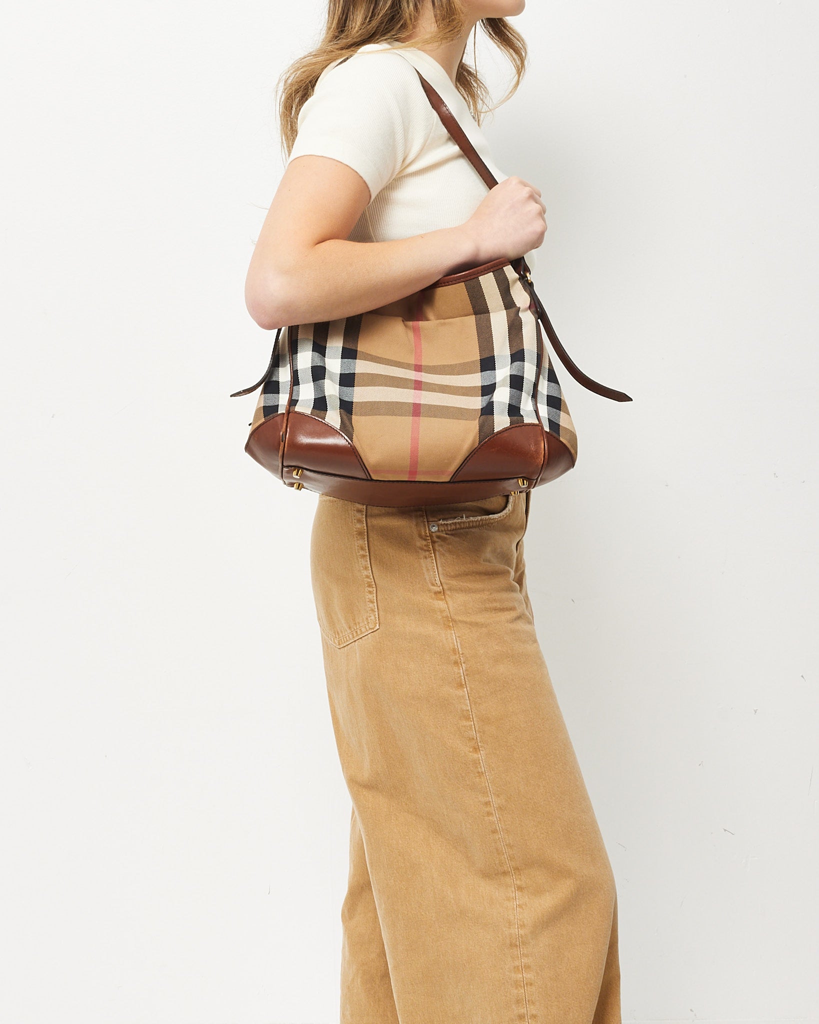 Brown Leather and Beige House Check Canterbury Shoulder Bag